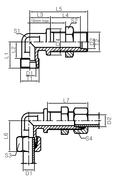 | T1 | T2 | D1 | D2 | D4 | L1 | L2 | L3 | L4 | L5 | L6 | L7 | S1 | S2 | S3S4 | g/pc | (bar) | ||